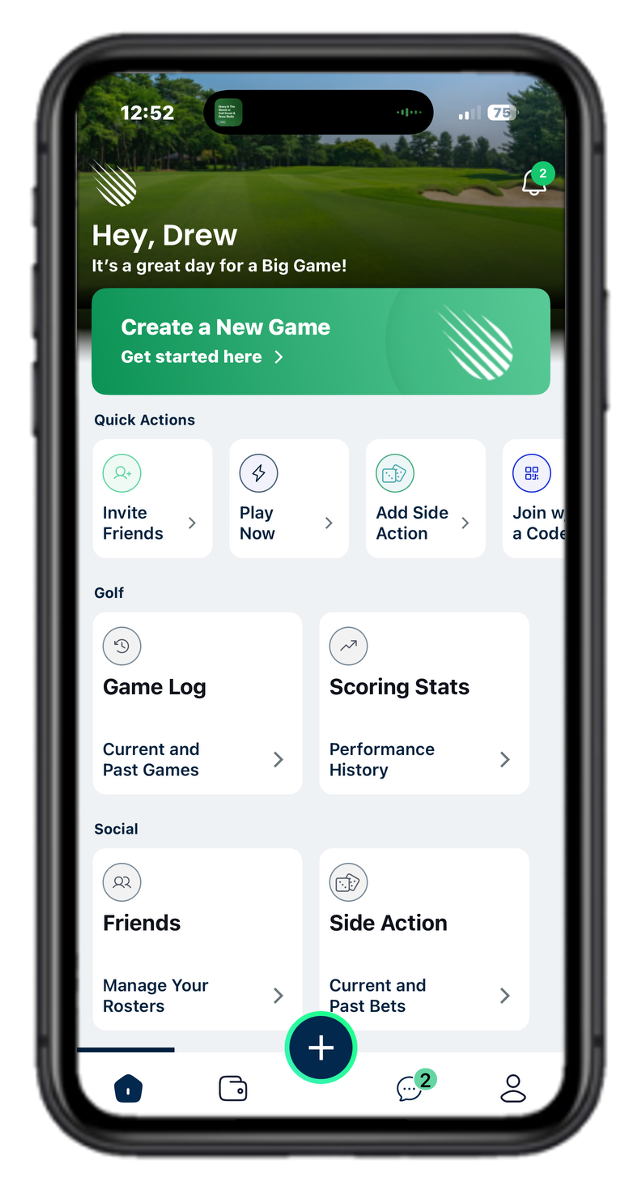 From everyday rounds to spur-of-the-moment challenges, Big Game makes it easy to wager on your games, add side action, and compete anytime, anywhere.